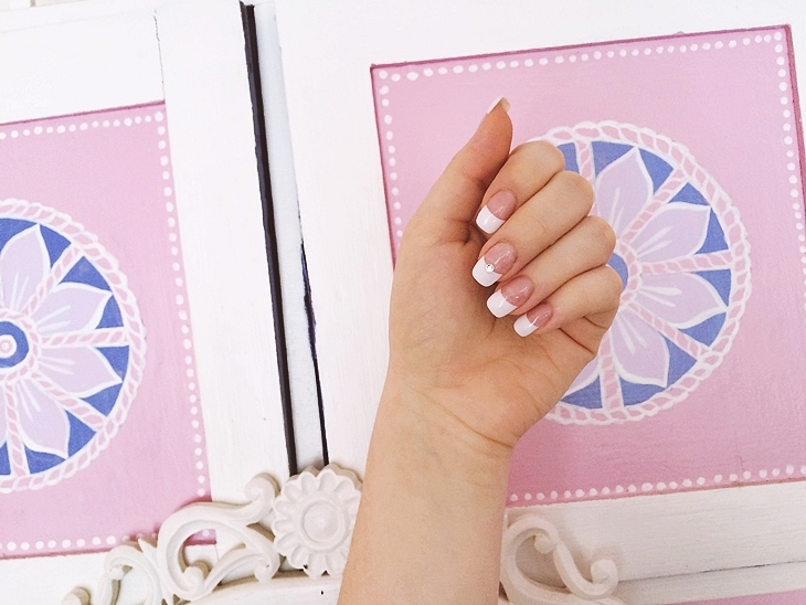 Kävin perjantaina huollattamassa kynteni. Mua nolotti hirveästi istua siinä laitattamassa kynsiäni, sillä olin antanut niiden mennä ihan järkkyyn kuntoon ja vielä lakannut monella kerroksella mustaa lakkaa.. Siinä menikin sitten aika pitkä tovi saada pohja valmiiksi uutta akryyliä varten. Nämä ranskalaiset manikyyrit näyttävät mulla kuvissa aina tosi muovisilta ja hassuilta, mutta luonnossa nämäkin ovat kyllä aivan ihanat ☺♥
