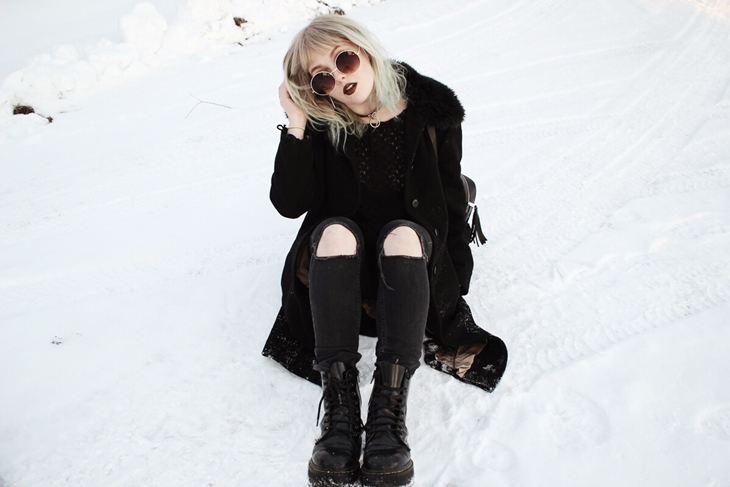 Jacket and sweater 2nd hand, sunglasses zeroUV, jeans Gina Tricot, boots Dr. Martens
